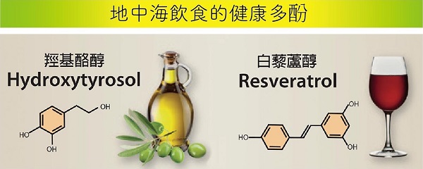 大家所熟悉的地中海飲食,已經第5年蟬聯最佳飲食風格的首位。自從1991年法國科學家開始研究地中海飲食的健康秘密(French Paradox),科學研究已經發現了紅酒多酚白藜蘆醇,和橄欖油多酚羥基酪醇,就是地中海飲食的健康成分。